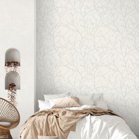 Минимализм с оттенком природы - идеальные обои для вашего интерьера! Знаете ли вы, что правильно подобранные обои могут полностью изменить характер помещения? Узор с нежными, тонкими листьями - это вневременной выбор, который подходит как для современных, так и для классических интерьеров.
